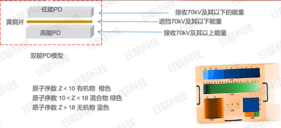 國際上對原子序數(shù)進行了劃分,原子系數(shù)小于10的稱為有機物,賦予橙色;原子序數(shù)在10和18之間的是混合物,給與綠色;原子序數(shù)大于18的是無機物,給藍色。根據(jù)這樣的標(biāo)準(zhǔn),安檢機軟件設(shè)置時,就需要想辦法來區(qū)分原子序數(shù)讓機器去識別。為了區(qū)分,所以在安檢機上面會安裝雙能芯片,一個高能,一個低能,通過過濾裝置把低能射線過濾掉。讓高能芯片獲取他的高等信息,在這個基礎(chǔ)上,根據(jù)低能高能來進行區(qū)分,然后進行有機物、無機物、混合物的著色。