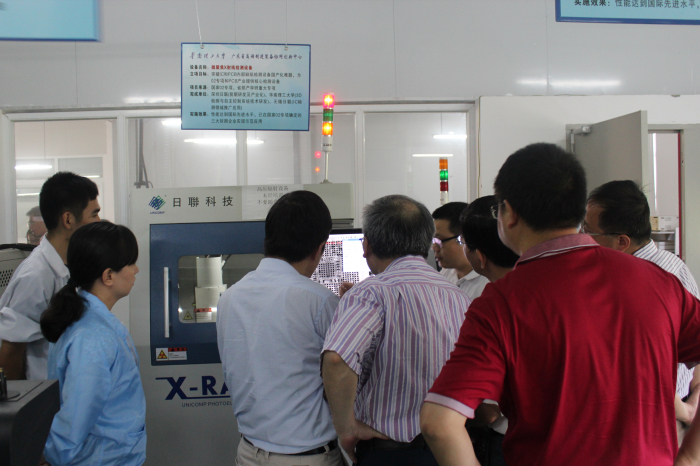 由來自于廣東省教育廳和鑒定組的十多位專家組成的鑒定委員會(huì),對(duì)日聯(lián)科技與華南理工大學(xué)聯(lián)合開發(fā)的微聚焦X射線檢測(cè)設(shè)備進(jìn)行了鑒定,通過現(xiàn)場(chǎng)考察、設(shè)備測(cè)試、聽取報(bào)告、現(xiàn)場(chǎng)提問與討論等多個(gè)環(huán)節(jié),對(duì)日聯(lián)科技研發(fā)的X-Ray檢測(cè)設(shè)備的創(chuàng)新性、實(shí)用性、技術(shù)水平以及所取得的經(jīng)濟(jì)效應(yīng)與社會(huì)效應(yīng)授予高度肯定與一致認(rèn)可。