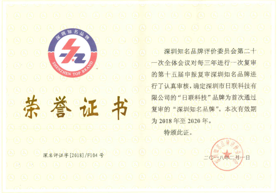 日聯(lián)科技自2017年3月28日啟動的第十五屆“深圳知名品牌”評價(jià)活動開始向評價(jià)委員會進(jìn)行申報(bào),評價(jià)委員會基于公司持續(xù)的卓越創(chuàng)新能力、科研能力、廣闊的市場前景及經(jīng)過行業(yè)專家評價(jià)和品牌價(jià)值評估、評價(jià)委全體會議審議評選、深圳市公證處現(xiàn)場公證等程序,繼續(xù)授予日聯(lián)科技“深圳知名品牌”榮譽(yù)稱號。