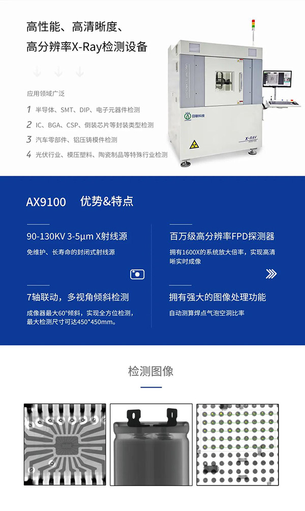 本次展會(huì),日聯(lián)科技在N1館A5-2展位展出了電子半導(dǎo)體X-Ray、X-Ray點(diǎn)料系統(tǒng)以及智能化的解決方案。在電子智能制造業(yè)面臨產(chǎn)線升級(jí)及智能化改造之際,以高質(zhì)量X-Ray檢測設(shè)備及智能化解決方案為電子制造保駕護(hù)航。